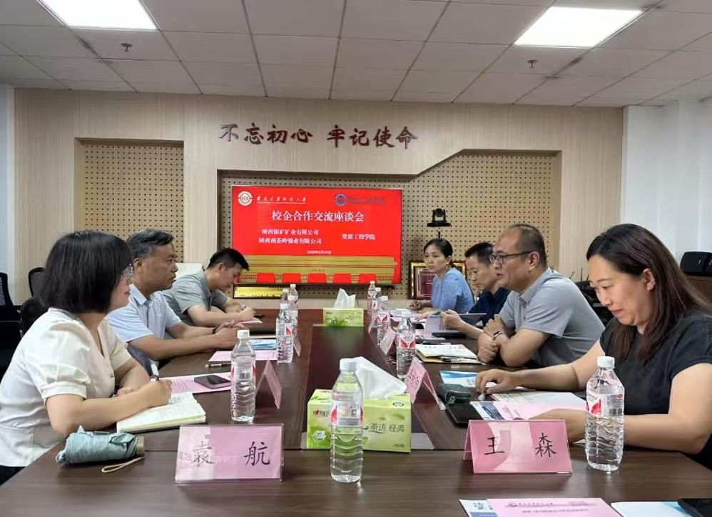 西安建筑科技大學資源工程學院黨委副書記李枚陽,采礦工程系教授聶興信,橫向科研工作專項助理、礦物加工工程系主任王森,安全工程系主任李華,資源工程學院輔導員袁航參加座談。陜西銀礦、煎茶嶺鎳業人力資源培訓部負責人及有關工作人員座談交流