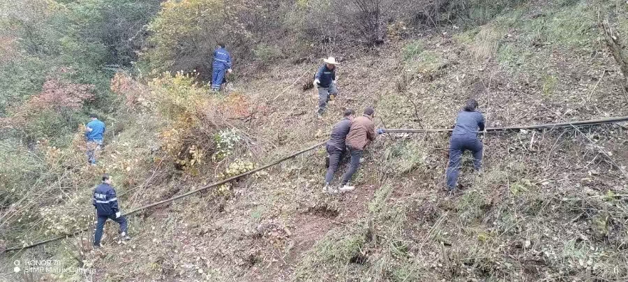 險情即命令,行動顯擔當。面對復雜地形與植被纏繞的“攔路虎”,金米黨支部想方設法、果斷出擊,由黨員帶頭,組織全體在崗人員趕赴現場開展義務整治。他們自帶砍柴刀、繩索等工具,對嚴重影響施工安全的荊棘雜草進行全面清理。